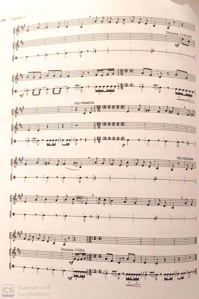 La melodia, per tant, de la veu com la de la dolçaina es tonal (la única nota alterada és la 7a menor).