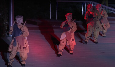 Són un cor de vuit personatges de foc, que semblen soldats, amb cascs d’inspiració clàssica, vestits blaus i cuirasses decorades amb mandales.