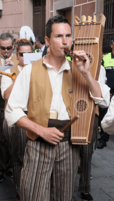 Efectivament, durant els segles XIV, XV i XVI hi ha descripcions de tambors de cordes arreu d’Europa, especialment a França, als Països Baixos, Itàlia i la Península Ibèrica. Almenys tres d’aquestes descripcions venen de Catalunya i confirmen, per tant, que l’instrument era conegut i existent en el territori. Val la pena dir que es descriu un instrument molt primitiu destacat per tenir només dues cordes, i els músics les percudien amb dues baquetes, una a cada mà; és a dir, no es tocava la flauta de manera simultània.